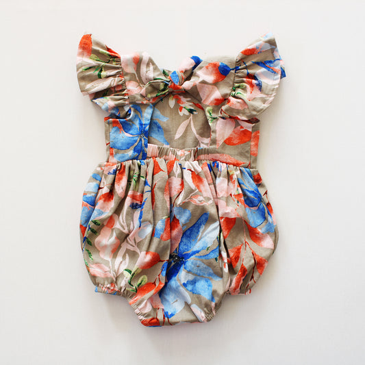 Open Back Romper - Wheat Harvest Floral (headband sold separately) limited edition