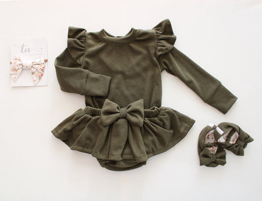 Frilly long sleeve Onesie - Olive Branch (accessories sold separately)