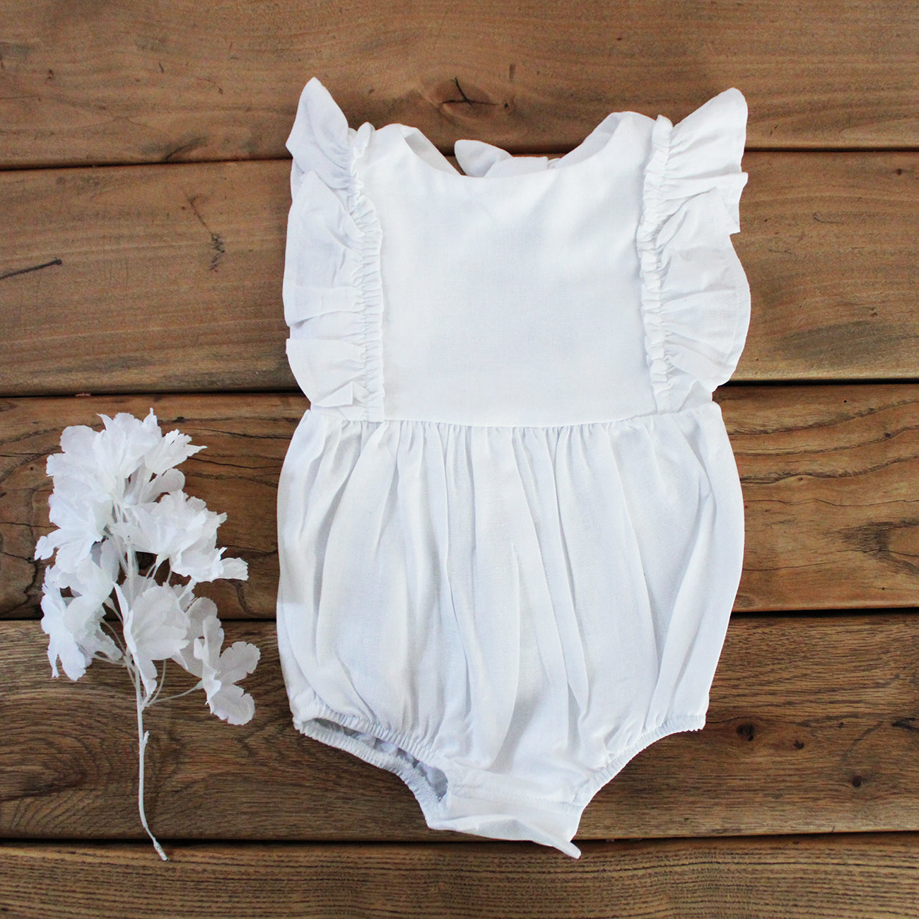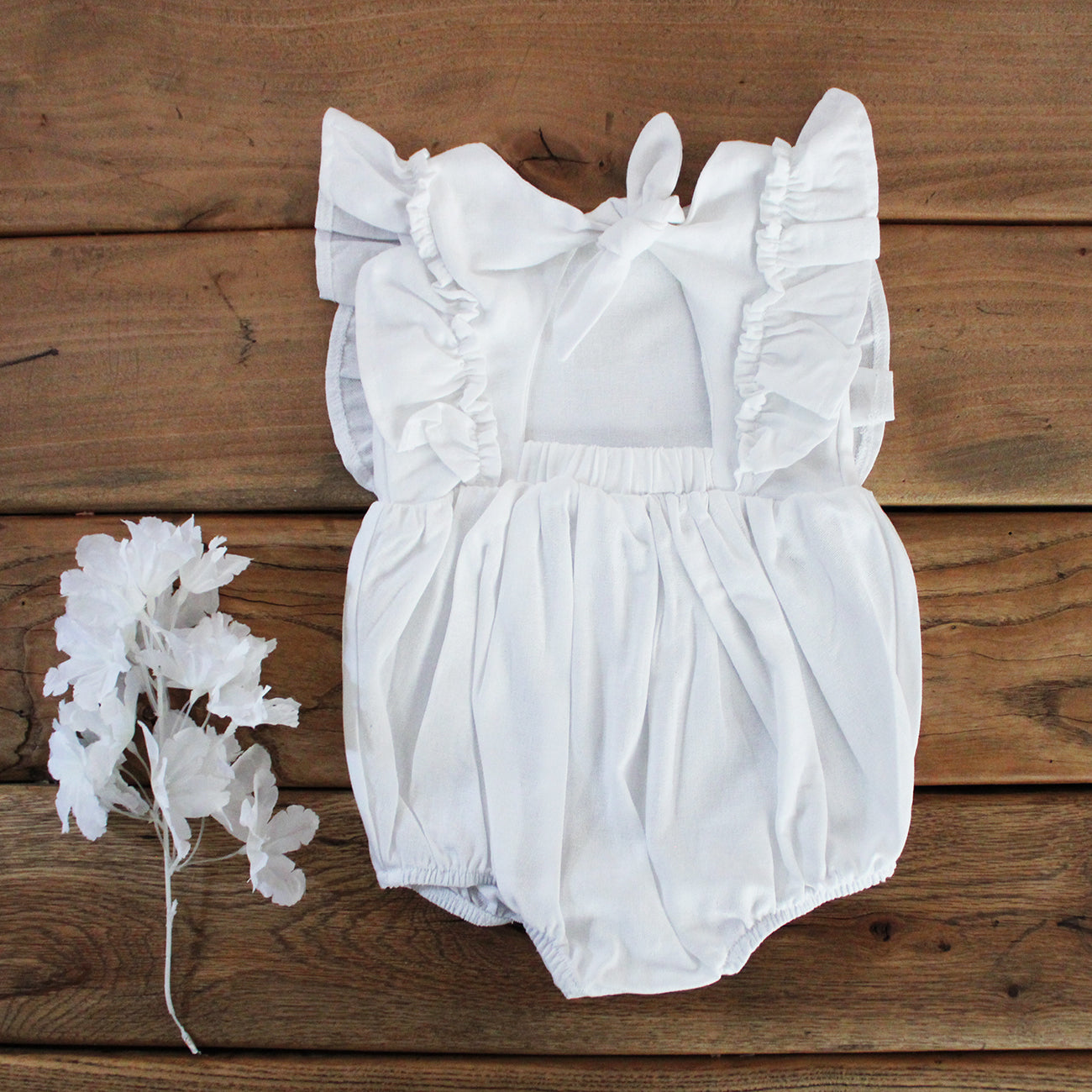 Open Back Frilly Romper - White Linen (accessories sold separately)