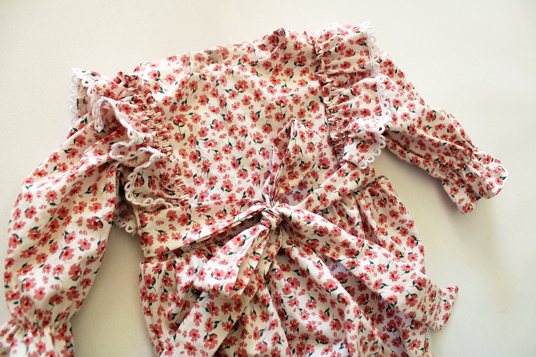 The Paisley romper for baby girls features bubble long sleeves with gathered lace frill detail on the bodice and back. It has buttons at the back for easy dressing and elasticated wrists for a comfortable fit. Add the matching headband and shoes for a cute look.