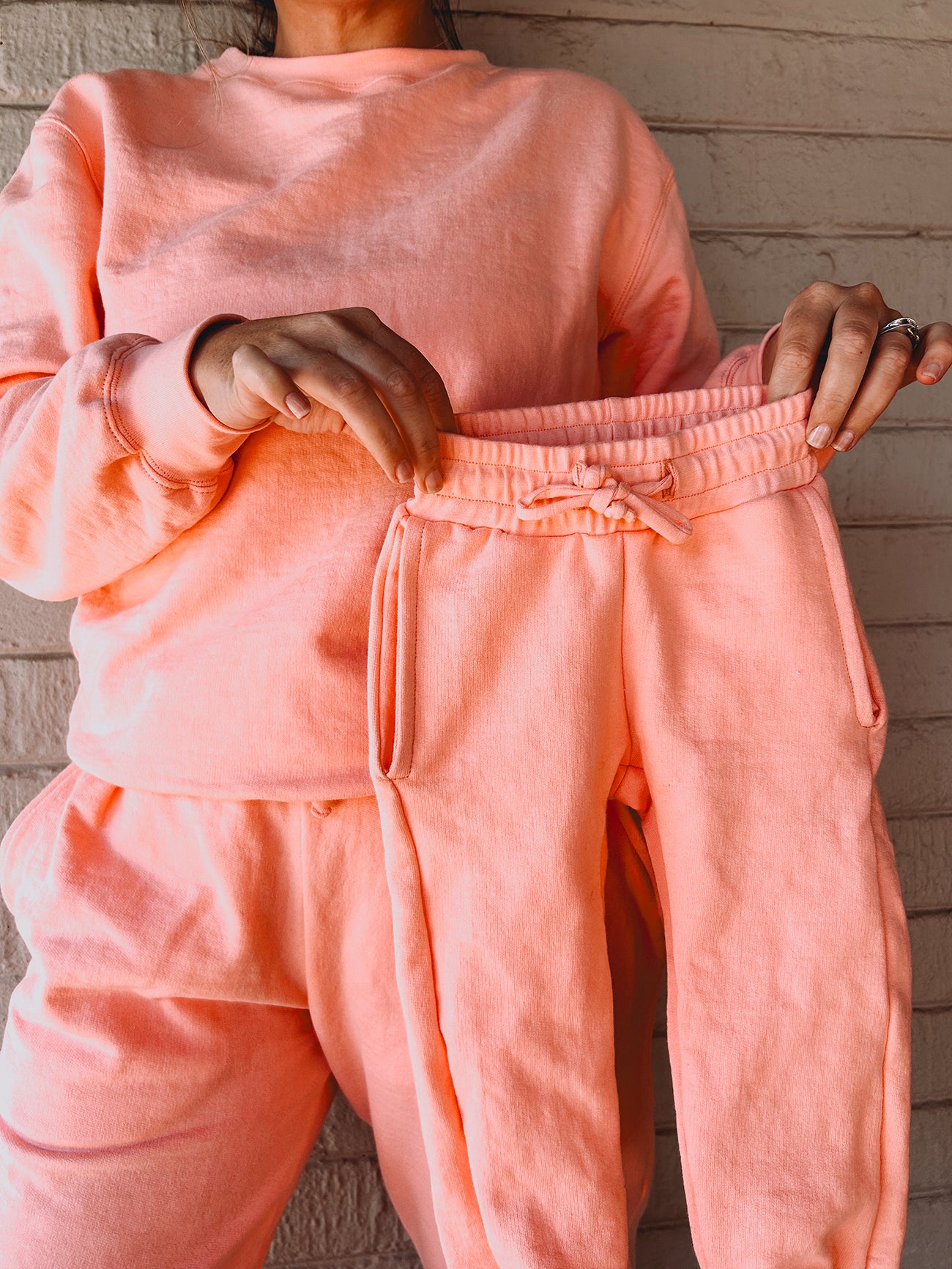 Our tracksuits for Women are super warm, made with premium quality 100% Cotton Fleece. Sold as a set the sweatshirt and sweatpants is true to size and is designed with comfort in mind. The sweatpants has drawstring to easily adjust the waist size if needed and features side pockets. The sweatshirt has a comfy slouchy fit with cuff detail. Matching kids sets available to match with your little one.