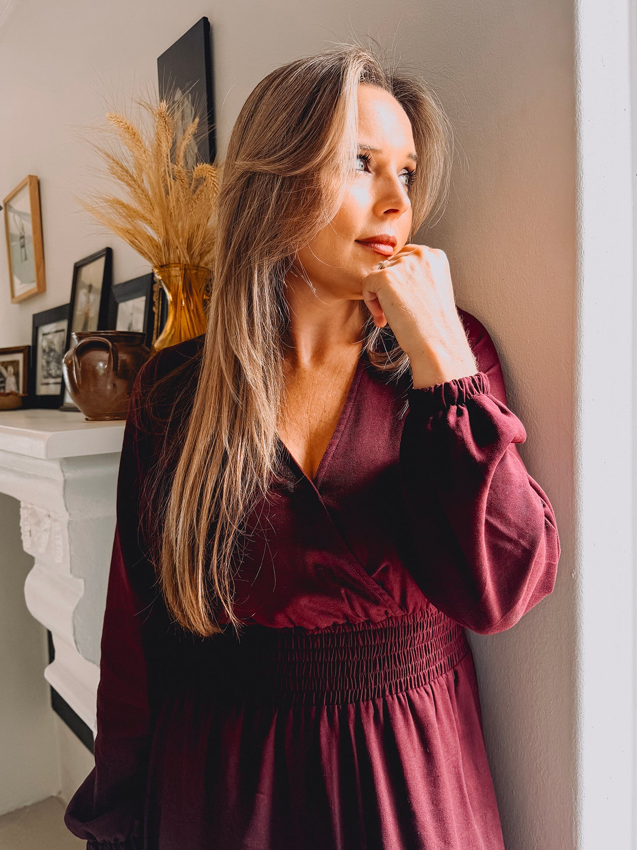 Womens Long Sleeve Maxi Tier Dress - Black Cherry