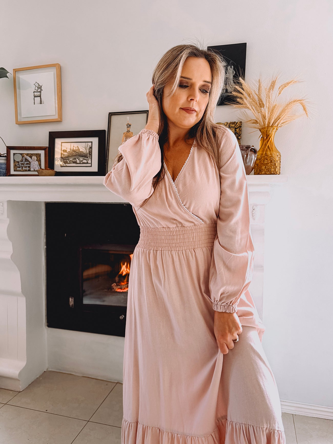 Womens Long Sleeve Maxi Tier Dress - Pink Promise