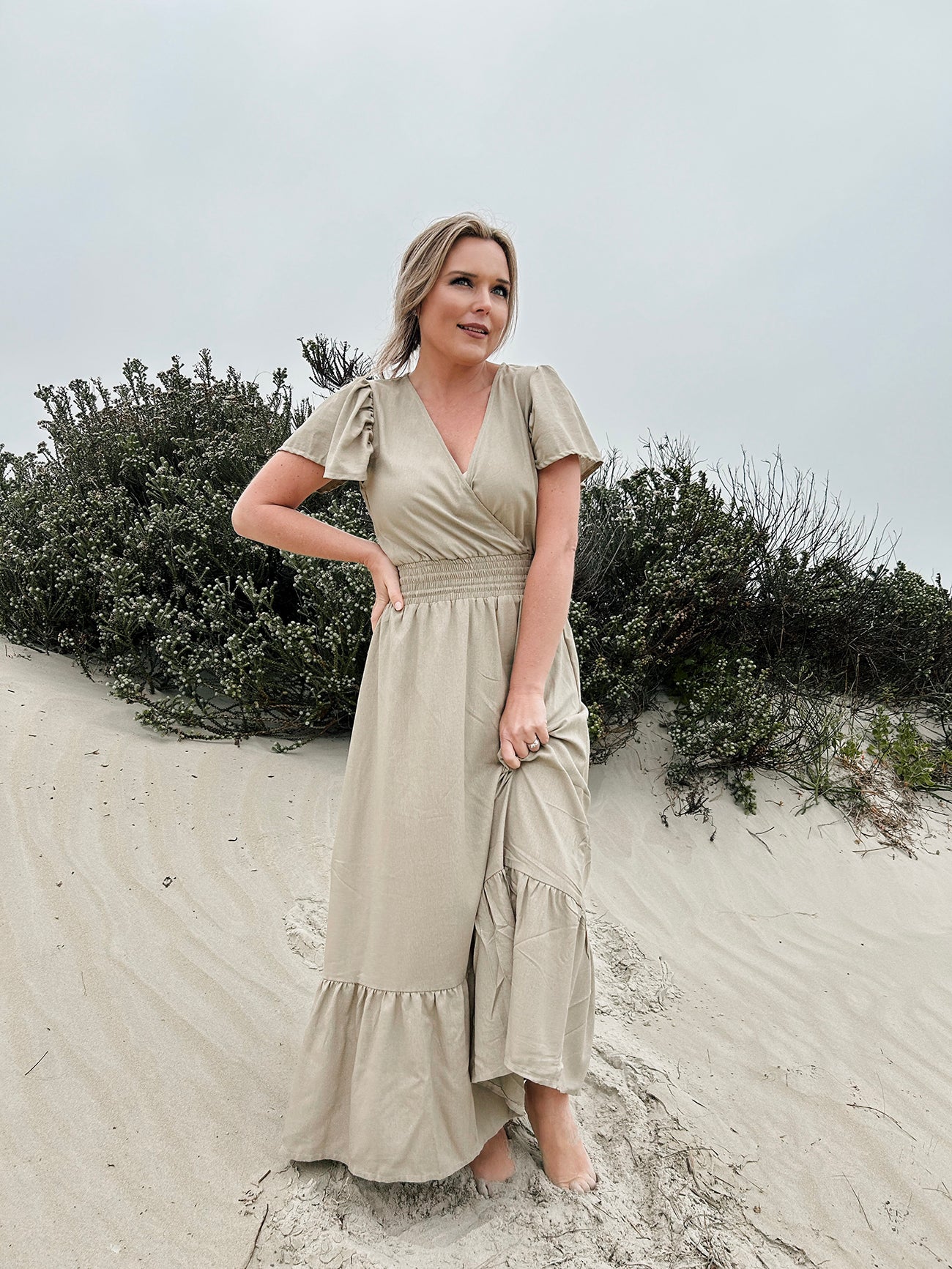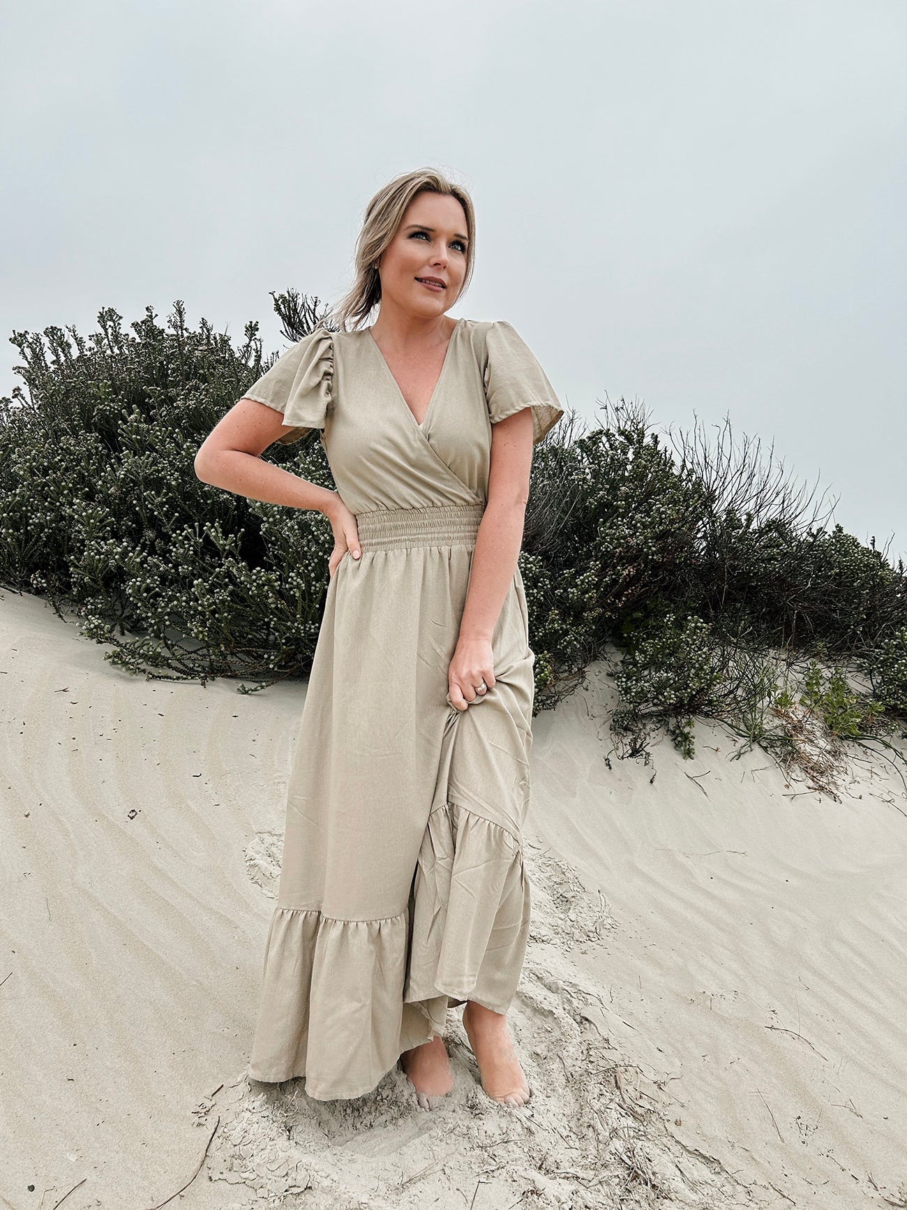 Womens short Sleeve Maxi Tier Dress - Wheat Harvest